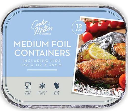 Cooke & Miller - 12pk Medium Foil Containers With Lids